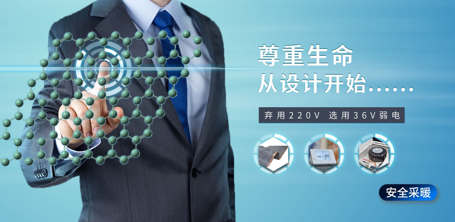 敬畏生命,棄用220V選用36V弱電供電,在發熱體破損或遇水的極端情況下不帶來安全隱患。